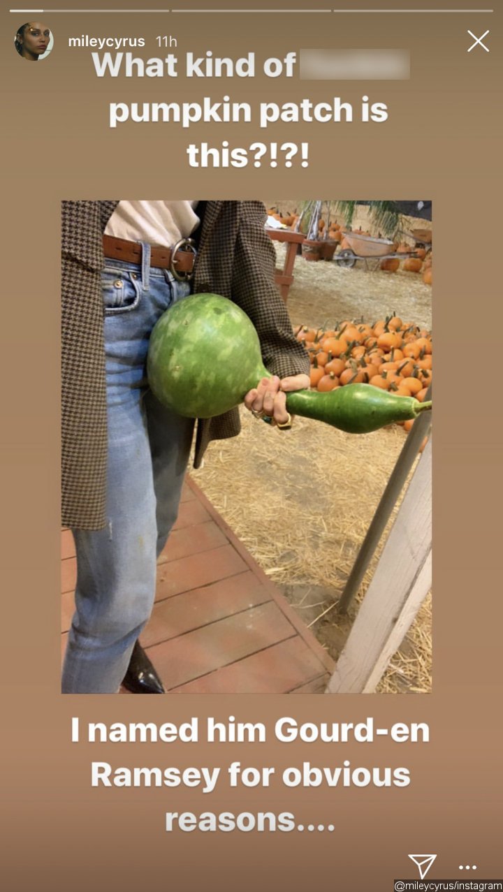 The "Wrecking Ball" singer took to Instagram Stories to share a picture of her posing suggestively with the pumpkin, which looks like a phallic symbol, as she holds it in front of her crotch.