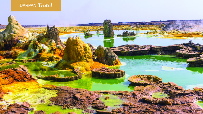 There is no place on Earth as cruel and, at the same time, as hauntingly beautiful as the Danakil Depression. Famed for being one of the hottest, driest, and lowest regions on the planet, with temperatures often soaring above 50°C, the Danakil Depression is not for the faint-hearted. But for those willing to brave its extreme climatic conditions, it offers a one-of-a-kind experience. Lined with active volcanoes, simmering lava lakes, endless salt flats, Sulphur pools, and neon-hued acidic hot springs, the Danakil Depression creates an enthralling scene that defies the conventional definitions of a landscape. The region is filled with extraordinary geological formations, making the terrain look almost unreal. Visiting the Danakil Depression is like stepping onto a surreal alien planet without leaving Earth.