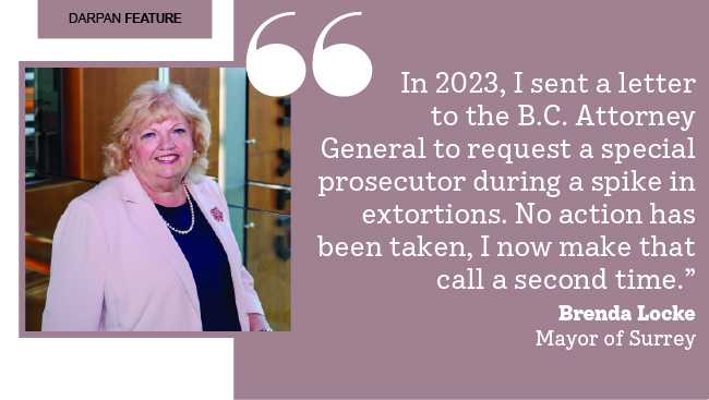 Mayor Locke is renewing her demand for a special prosecutor to be assigned to fast-track extortion cases. “In 2023, I sent a letter to the B.C. Attorney General to request one during a spike in extortions. No action has been taken,” she says. “I now make that call a second time.” She also criticizes delays in the justice system that prevent police from laying charges directly, keeping suspects on the streets longer. Meanwhile, Mayor Locke assures that Surrey is ramping up safety efforts with upgraded surveillance at 600+ intersections and a new Public Safety Department to support investigations.