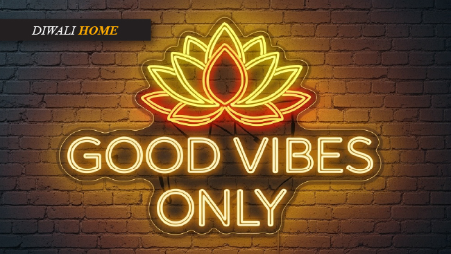 Fairy lights are a Diwali staple, but they don’t have to be basic. Create a ‘light wall’ by shaping them into a diya, lotus, or a Sanskrit symbol, metamorphosing it into an instant focal point and perfect photo backdrop. Or layer warm-toned string lights with mini lanterns in glass jars to add depth and glow without cluttering precious surfaces. Bonus tip: neon LED signs with playful phrases like ‘Let There Be Light’ or ‘Good Vibes Only’ bring a modern, Gen Z twist to tradition.