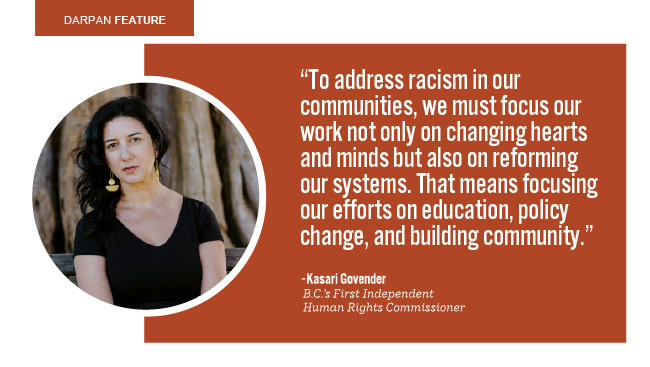 B.C.’s first independent Human Rights Commissioner, Kasari Govender, says the issue cannot be isolated to one cause or one group. “There is no one issue that rises to the top when talking about racism in B.C. today,” she explains. “We are seeing a high number of hate incidents both online and in real life, amplified by the rampant spread of misinformation.”