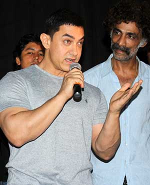 The film's director actor Makrand Deshpande surely looks ecstatic to have Aamir attend the show.