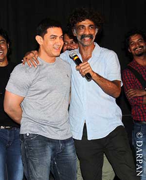 The film's director actor Makrand Deshpande surely looks ecstatic to have Aamir attend the show.