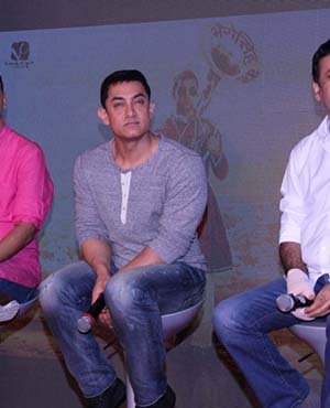 Aamir Khan in Mumbai along with director Rajkumar Hirani and producer Vidhu Vinod Chopra launched the 2nd poster of his upcoming film PK.