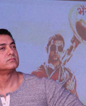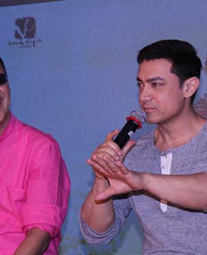Aamir Khan in Mumbai along with director Rajkumar Hirani and producer Vidhu Vinod Chopra launched the 2nd poster of his upcoming film PK.