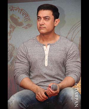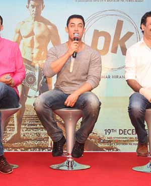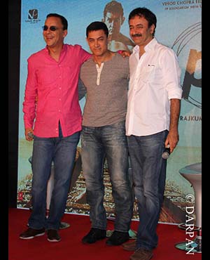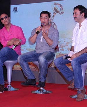 Aamir Khan in Mumbai along with director Rajkumar Hirani and producer Vidhu Vinod Chopra launched the 2nd poster of his upcoming film PK.
