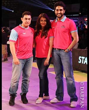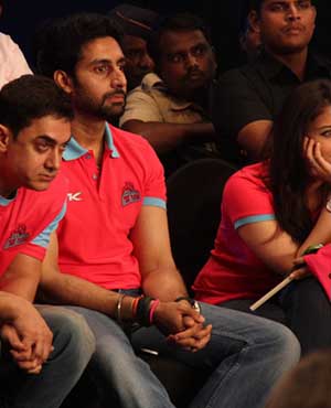 Abhishek Bachchan's kabaddi team Jaipur Pink Panthers faced their first match against U Mumba in the Pro Kabaddi League at the NSCI Stadium in Mumbai on Saturday.