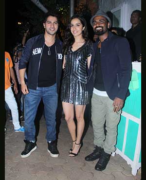 The film has collected around 100 crore all over India. Here, the hosts of the party Varun Dhawan and Shraddha Kapoor pose with the director of their film Remo D'Souza.