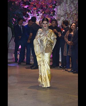 After a star-studded pre-engagement function on Thursday, the Ambanis threw a grand engagement party on Saturday which was graced by Shah Rukh Khan, Aamir Khan, Aishwarya Rai, Shahid Kapoor, Ranbir Kapoor, Kajol, Alia Bhatt, Madhuri Dixit, Shraddha Kapoor, Parineeti Chopra, Arjun Kapoor and Rekha among others.