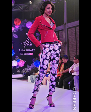 Alia Bhatt launched her first clothing line 'Alia Bhatt for Jabong' with online retailer Jabong.com. The young fashionista unveiled her fall winter collection yesterday at Four Seasons Hotel in Mumbai. Models walked the ramp in sweat shirts, ripped denim, fringe, leather jackets, floral prints and the actress' favourite animal print.