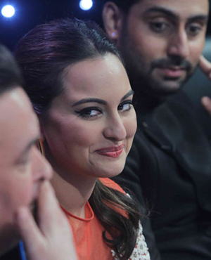 Sonakshi Sinha, who has done a special song ‘Nachan Farrate’ in ‘All Is well’ was joined by the film’s actors Rishi Kapoor and Abhishek Bachchan on the sets of ‘Indian Idol Junior 2015’.