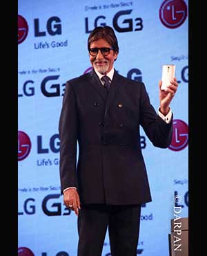 Amitabh Bachchan unveiled the LG G3 smartphone to a large audience of tech enthusiasts, dealers and media at a popular studio in the city. Introducing the phone, Big B held forth to the crowd on its features.