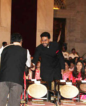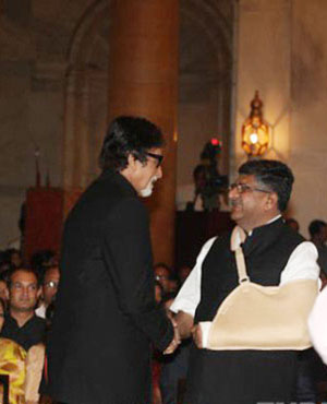 President Pranab Mukherjee on Wednesday conferred Padma Vibhushan on Bollywood superstar Amitabh Bachchan.