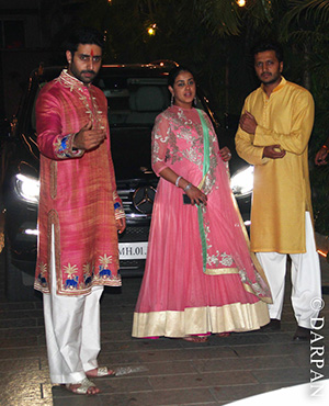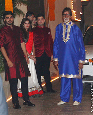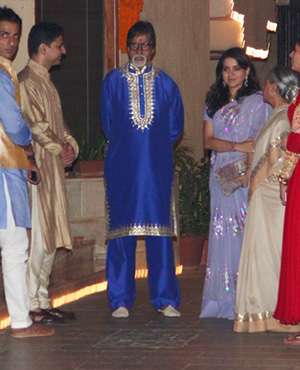 Amitabh Bachchan, wife Jaya, son Abhishek, cricketer Sachin Tendulkar, Sonam Kapoor, Kangna Ranaut, Hrithik Roshan, Sonakshi Sinha, Shatrughan Sinha, Sonam Kapoor, Anil Kapoor, Ashutosh Gowariker,Farah Khan, Raveena Tandon,Karan Johar,Varun Dhawan, Kangana Ranaut, Rakeysh Om Prakash Mehra,Sidharth Malhotra, Shraddha Kapoor, Riteish Deshmukh, Genelia D’Souzaand other prominent celebs were snapped at the Bachchans' Juhu bungalow Jalsa