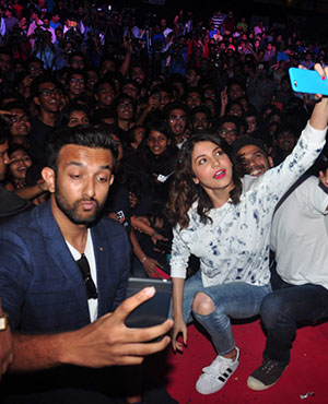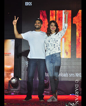 'NH10' actors Anushka Sharma and Neil Bhoopalam looked dapper at their films promotional event in Mumbai.