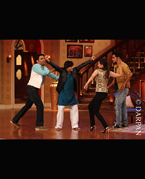 Armaan Jain, who is all set to make his Bollywood debut with ‘Lekar hum Deewaana Dil‘ made an appearance on the sets of the popular comedy show, ‘Comedy nights With Kapil‘. The Kapoor family's latest Bollywood entrant was accompanied by his elder sister Karisma Kapoor on the sets of the comedy show.