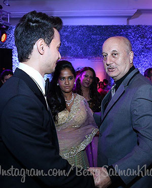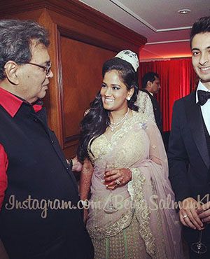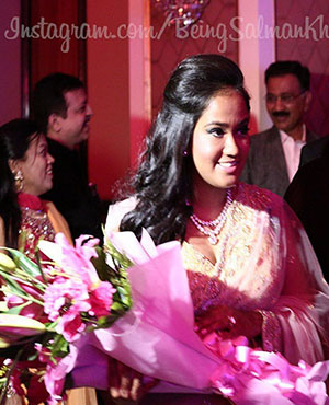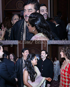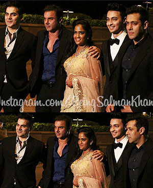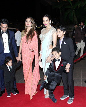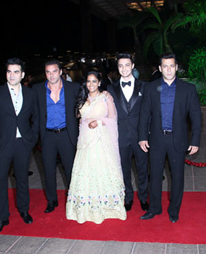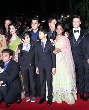 The event was graced by the who's who from the film industry. While the entire Khan family, including Salman Khan, Sohail Khan, Arbaaz Khan, Malaika Arora Khan and Salim Khan were present at this event, many celebrities who could not attend Arpita and Ayush's wedding in Hydrabad also came to bless the couple.