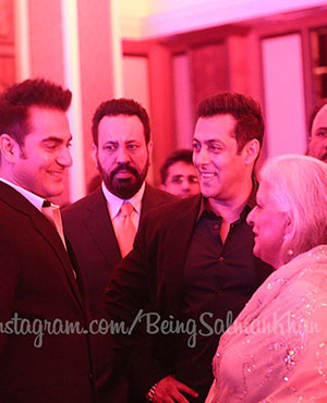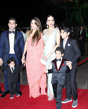 The event was graced by the who's who from the film industry. While the entire Khan family, including Salman Khan, Sohail Khan, Arbaaz Khan, Malaika Arora Khan and Salim Khan were present at this event, many celebrities who could not attend Arpita and Ayush's wedding in Hydrabad also came to bless the couple.