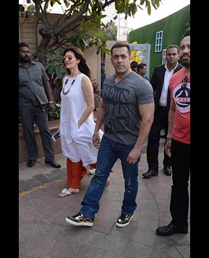 Salman's ex-girlfriend Sangeeta Bijlani was also a part of the occasion, and Khan was by her side most of the afternoon.