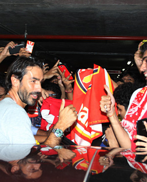 Robert Pires swamped by Arsenal fans as he arrives to sign for Indian Super League side FC Goa
