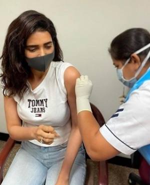 Karishma Tanna posted: "One step at a time #vaccinated. I urge everyone to get themselves registered and get their shot. Together we will bounce back #covid_19 #fightcorona."