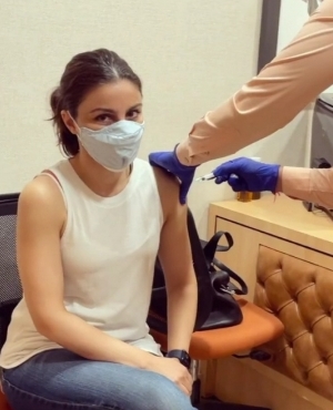 Karishma Tanna posted: "One step at a time #vaccinated. I urge everyone to get themselves registered and get their shot. Together we will bounce back #covid_19 #fightcorona."
