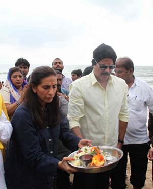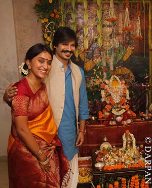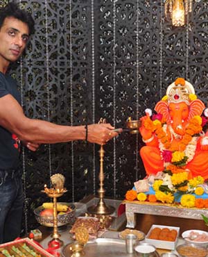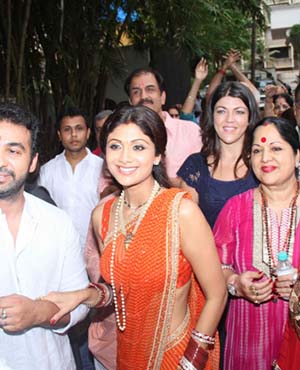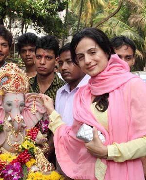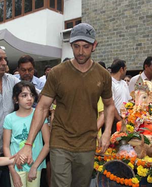 Festive mood has gripped the Bollywood brigade with several film stars taking a day off from work to celebrate Ganpati festival