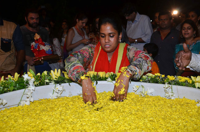 Several pictures of Bollywood celebs offering prayers to Lord Ganesha pop up every year. Salman Khan is one such superstar who celebrates Ganesh Chaturthi in a grand manner; many stars of the tinsel town attend the celebrations at his home.
