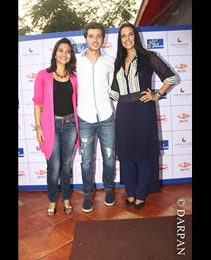 ‘Ekkees Toppon Ki Salaami’ actors Neha Dhupia, Aditi Sharma and Divyendu Sharma were clicked at the launch of India's first Braille and Audio Menu for the visually-challenged at Bombay Blue restaurant in Mumbai