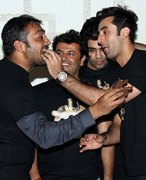 Ranbir Kapoor, Karan Johar, Anurag Kashyap along with the entire gang of boys associated with the 'Bombay Velvet' team were seen having some boys time at the film's wrap up party in Mumbai