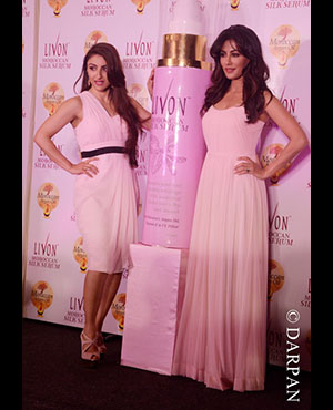 Bollywood actresses Chitrangda Singh and Soha Ali Khan launched Livon Moroccan Silk Serum in Mumbai.