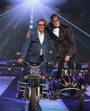 Amitabh took to Facebook to share photographs of the Star Plus show’s finale, in which Dharmendra can be seen riding a bike while “Jai” is standing in the sidecar.