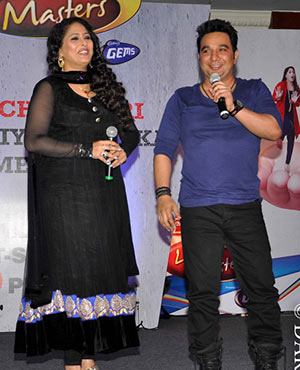 Geeta Kapoor with co-judge Ahmed Khan at the launch of dance reality show Dance India Dance Lil Masters Season 3, held in Mumbai.