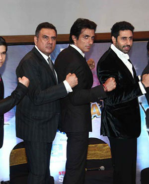 "Happy New Year" director Farah Khan, along with the film's actors -- Shah Rukh Khan, Abhishek Bachchan, Boman Irani, Sonu Sood and Vivaan Shah -- launched the show at a lively press conference, where the media sampled the vivacious energy of two participants