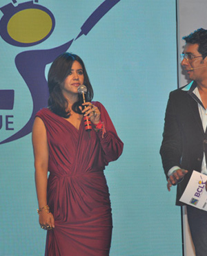 Producer Ekta Kapoor launched the reality show ‘Box Cricket League’ in the presence of some big Bollywood stars at an event in Mumbai. The sport-reality show on television, which will see over 150 television stars battle it out in a game of indoor box cricket.