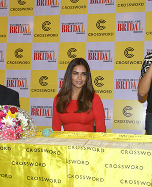 Esha Gupta was spotted at the launch of the fifth edition of The Hindu Bridal Mantra. She also features on the cover in a stunning Manish Malhotra lehenga and Anita Dongre choli