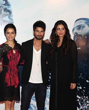 Shahid Kapoor, Shraddha Kapoor, Kay Kay Menon, Tabu,Vishal Bhardwaj and Siddharth Roy Kapur during the trailer launch of film Haider at PVR Cinmas, Juhu, Mumbai