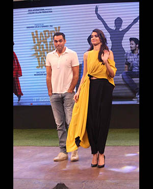 Abhay Deol, Diana Penty, Ali Fazal and Momal Sheikh -- actors of "Happy Bhaag Jayegi" -- were seen enjoying themselves thoroughly during a visit to the sets of "The Kapil Sharma Show".