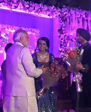 Harbhajan Singh, who tied the knot with Bollywood actress Geeta Basra on Thursday, hosted a high-profile reception in New Delhi on Sunday.