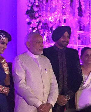 Harbhajan Singh, who tied the knot with Bollywood actress Geeta Basra on Thursday, hosted a high-profile reception in New Delhi on Sunday.