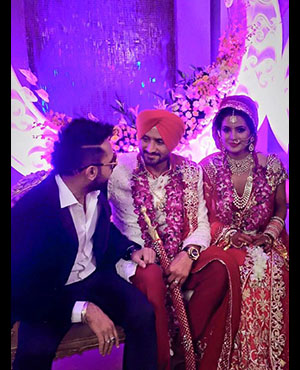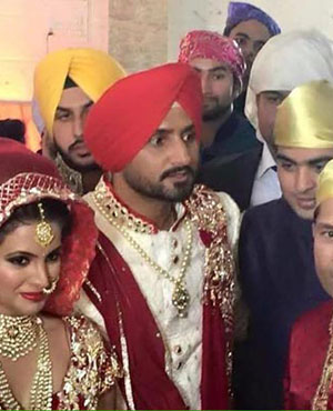 While Geeta was wearing a red lehenga, designed by Archana Kochhar, Bhajji adorned sherwani and red turban.