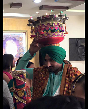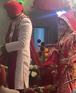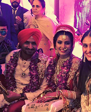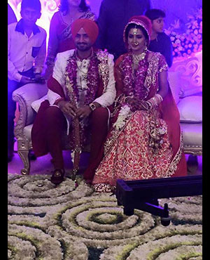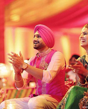 While Geeta was wearing a red lehenga, designed by Archana Kochhar, Bhajji adorned sherwani and red turban.