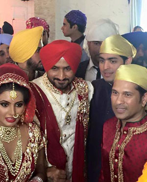 Batting legend Sachin Tendulkar and his wife Anjali and founder and chairperson of the Reliance Foundation Nita Ambani, who is also the owner of Indian Premier League (IPL) Twenty20 team Mumbai Indians, for whom off-spinner Harbhajan plays, were among the dignitaries at the wedding.