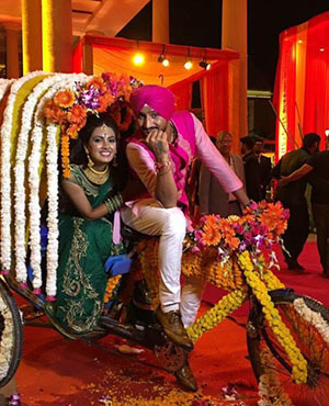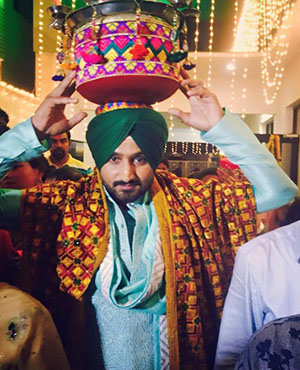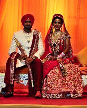 While Geeta was wearing a red lehenga, designed by Archana Kochhar, Bhajji adorned sherwani and red turban.