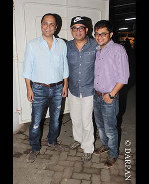 Akshay Kumar along with wife Twinkle Khanna and son Aarav was spotted at the special screening of Holiday at Sunny super sound