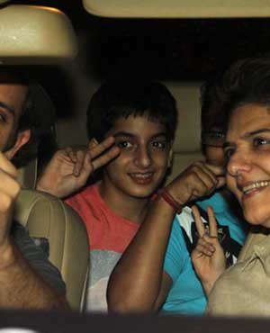 Hrithik Roshan, Pinky Roshan Snapped with Hrehaan and Hridhaan at Pizza Corner in Bandra