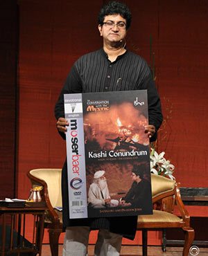 Prasoon Joshi in conversation with Sadhguru Jaggi Vasudev of Isha Foundation. Juhi Chawala, Madhu and Prahalad Kakkar were present for this occassion