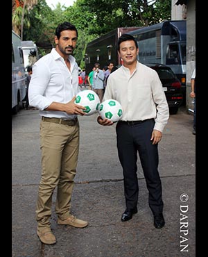 John Abraham and Baichung Bhutia at India's Biggest Football Hangout Using Google Lightbox Technology