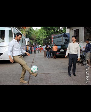 John Abraham and Baichung Bhutia at India's Biggest Football Hangout Using Google Lightbox Technology