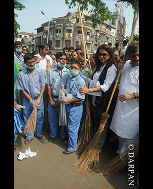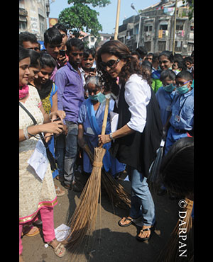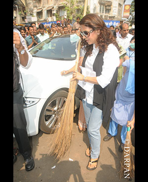 Bollywood actor Juhi Chawla conducted Swachh Bharat Abhiyann with the Mentally Disabled kids from Munshi Yojana Foundation School at Mumbai
